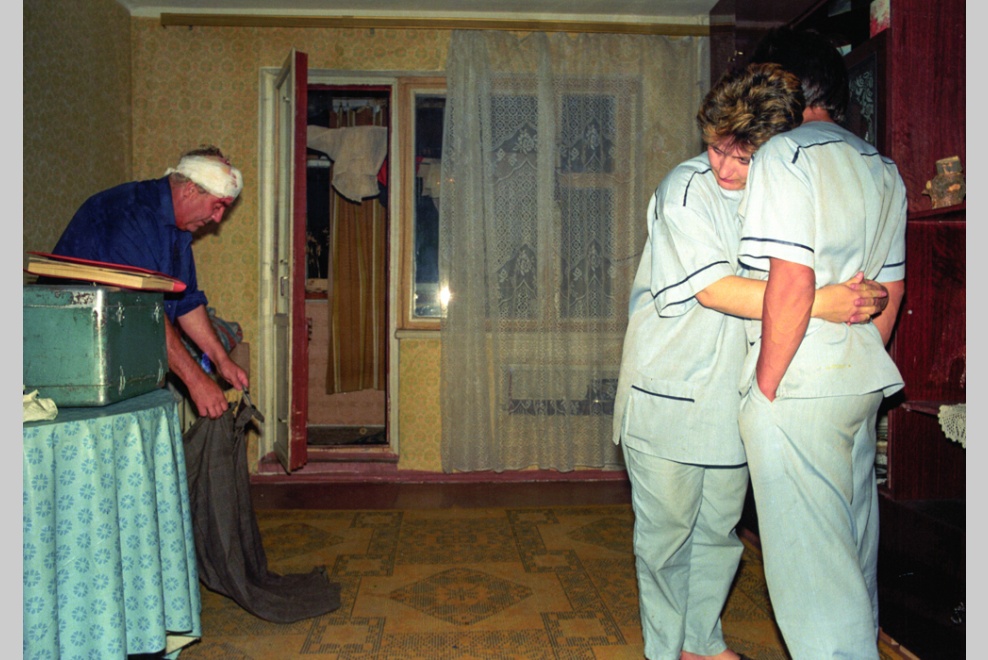 On 9 May on the Day for the Commemoration of Victory in the Great Patriotic War we arrived to a private home following a call. The floor had been sprayed with blood a little old woman was holding her head. When asked what happened she cried and said that her husband, who she had lived with for more than 30 years, fractured her skull with an axe. This was how Victory Day turned out.