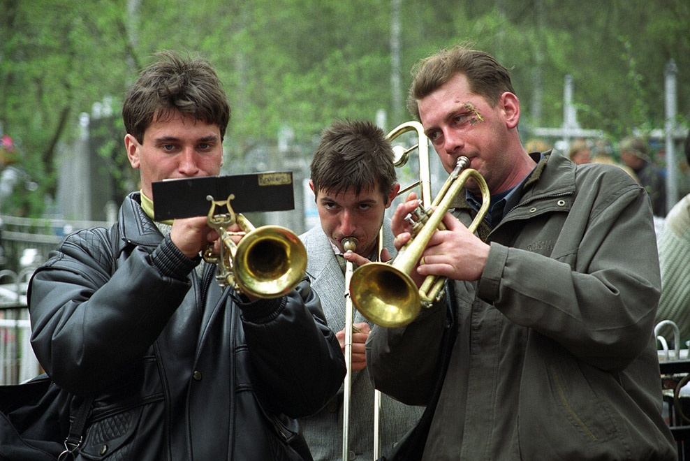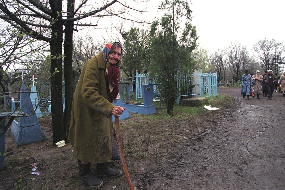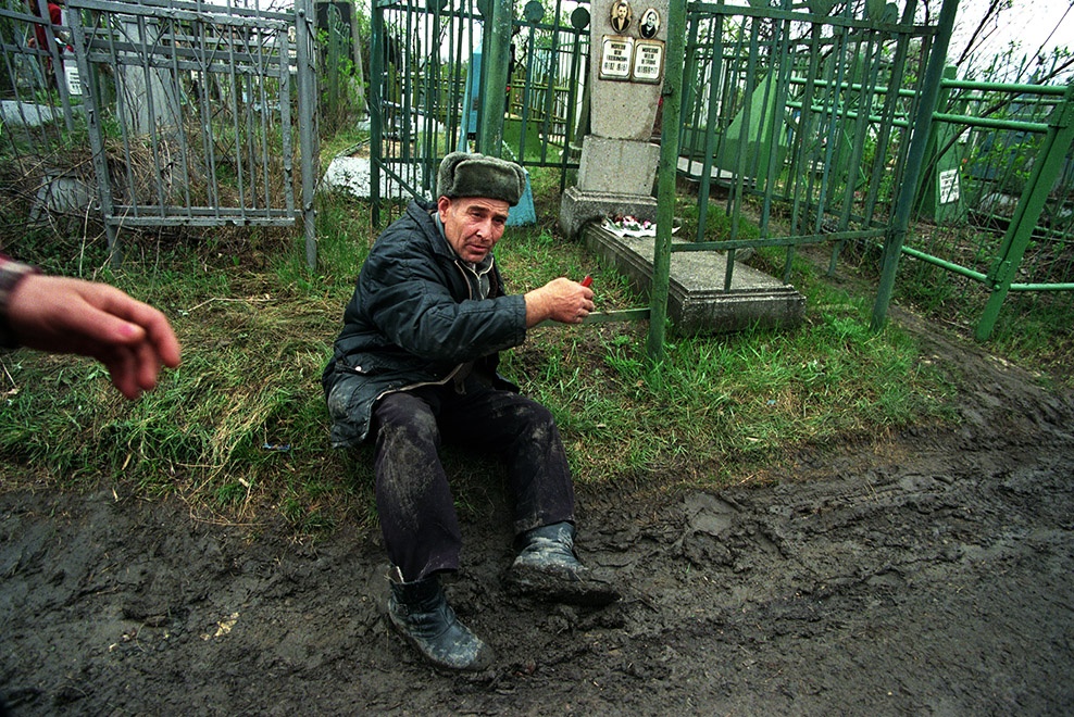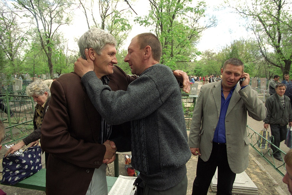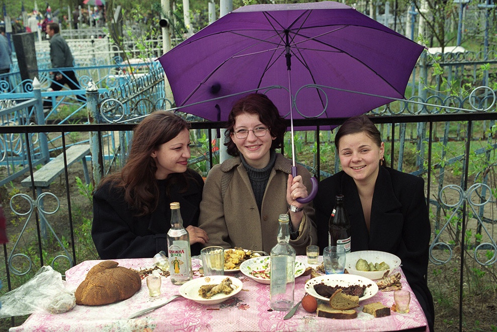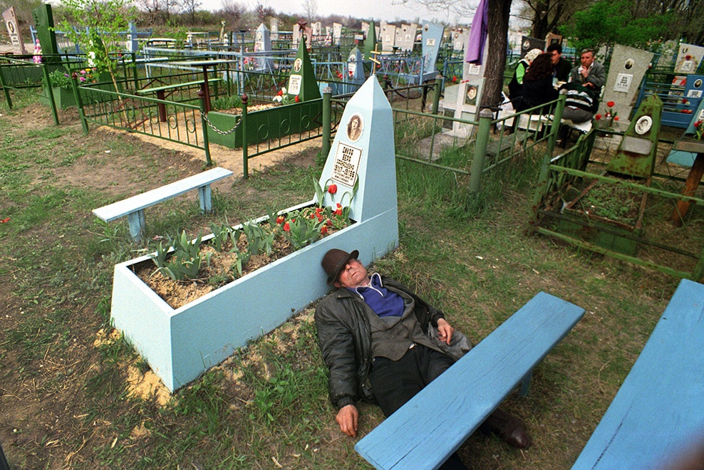 The Orthodox custom of visiting a cemetery on the Day of Rejoicing (celebrated on the ninth day after Easter) morphed long ago into a tradition of visiting the graves of deceased relatives on Easter Sunday and having a memorial feast at the cemetery. Massive consumption of alcohol became an unavoidable part of the memorial ceremony. Chekmenev’s photographs demonstrate the sadness and grotesquerie of this popular mass ritual.